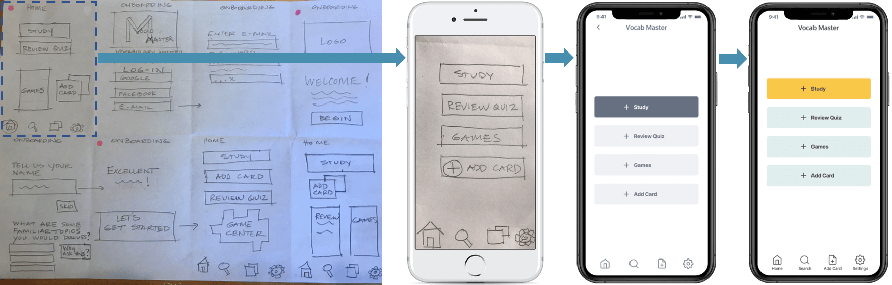 Vocab Master was my first foray into UX. This particular project gave me the opportunity to complete a partial scope of a design in a short time, to consider research strategy and to perform fairly quick research with in-person testing. Although it had more of a standard brief, I could incorporate features that would truly benefit the persona, based on my research.