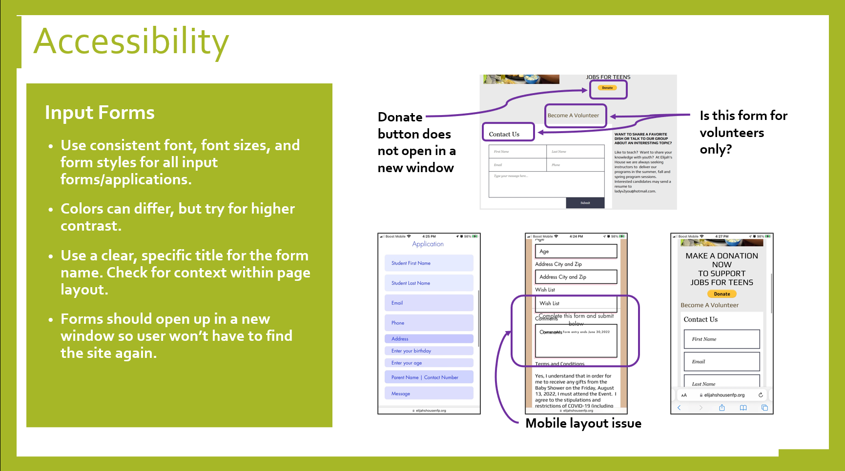 Although this Client had some experience building parts of this website with a builder, SEO and accessibility concepts were new.