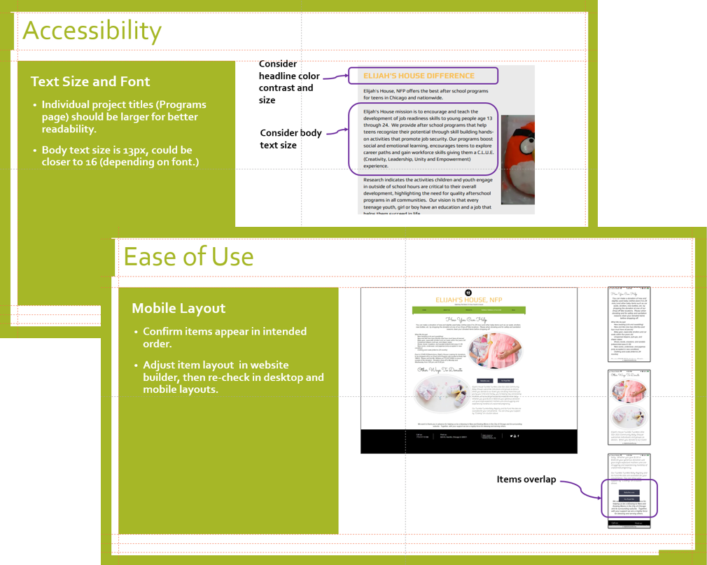 Some of the items I found in the content audit overlapped with SEO or accessibility. I only listed the additional items to avoid duplication.